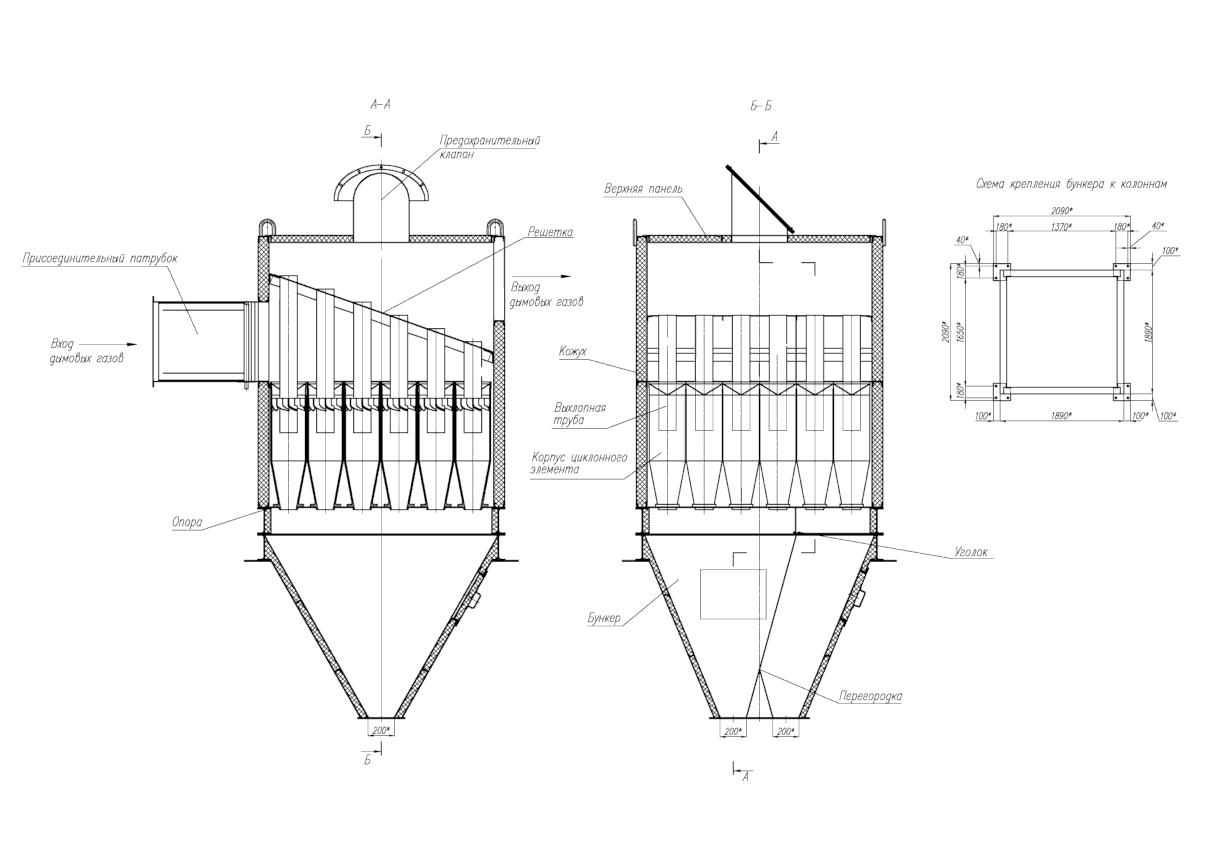 Устройство и принцип работы циклона БЦ-254-2-4x(3+2)