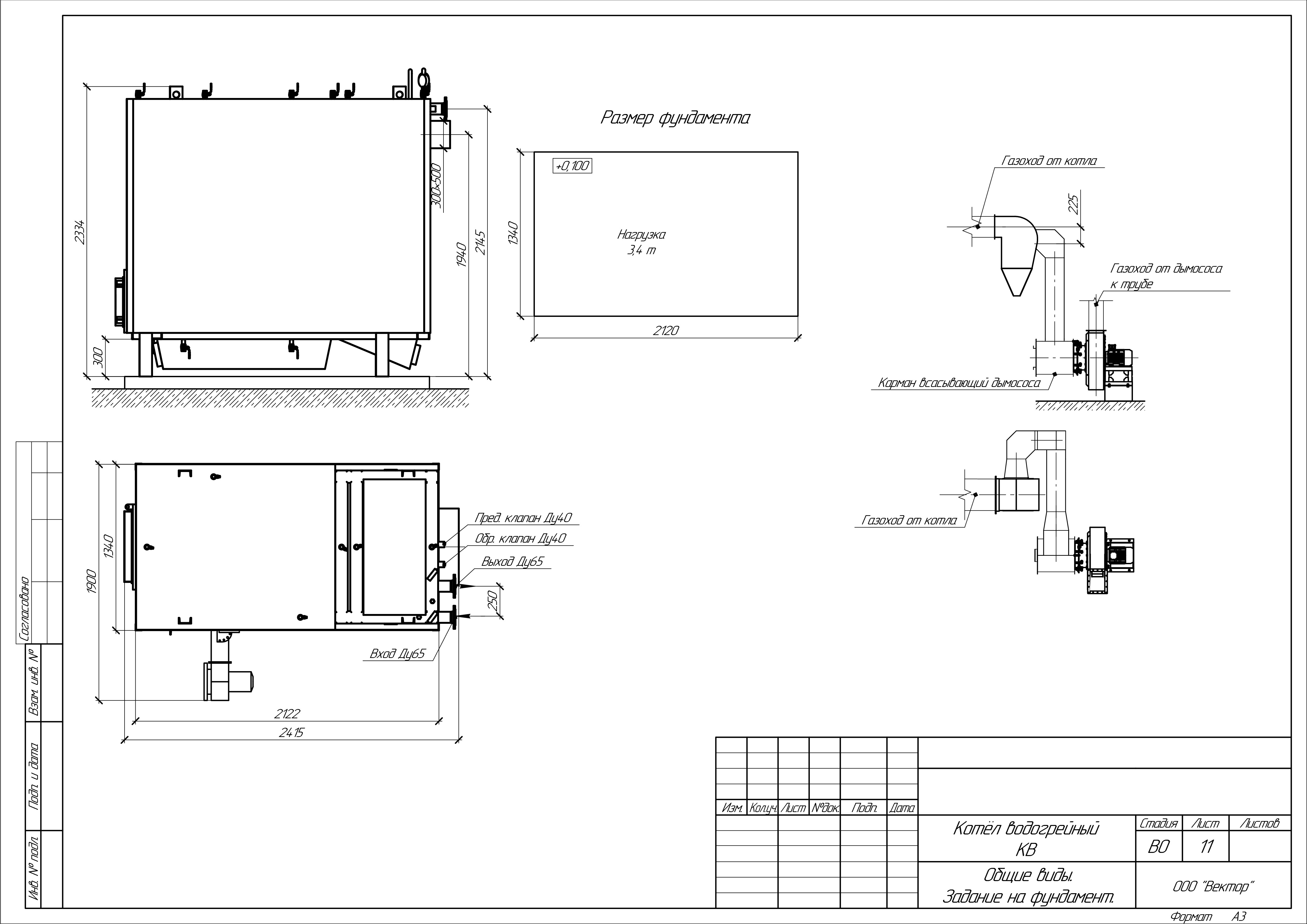 Масса котла (без воды): 2400 кг